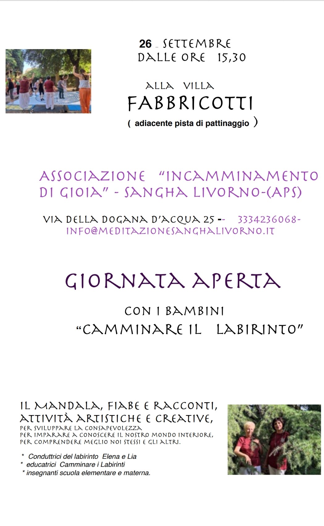 Il labirinto, archetipo universale ricco di significati simbolici, costituisce uno strumento meditativo di guarigione e di pace. La camminata consapevole sul labirinto si rivela molto utile per calmare la mente, liberare la creatività, donare un senso di pace interiore. Sul labirinto i bambini faranno i primi passi di un incamminamento gentile che affronta la terra camminando con gioia, camminando in pace.